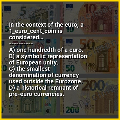 The 1 euro cent coin (€0.01) has a value of one hundredth of a euro and is composed of copper-covered steel. It is the lowest-value coin in the Eurozone; the next lowest are the 2 and 5 euro cent coins. All euro coins have a common reverse and a country-specific (national) obverse. The coin has been used since 2002 and was not redesigned in 2007 as was the case with the higher-value coins.