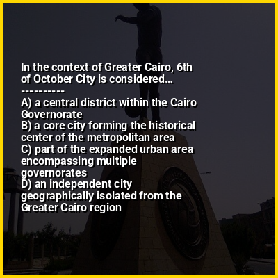 ⭐ In the context of Greater Cairo, 6th of October City is considered…