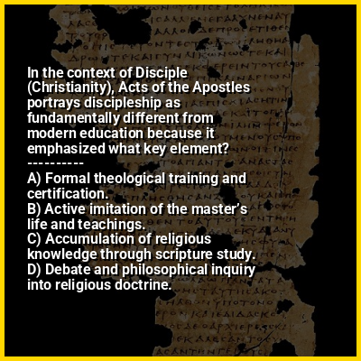 ⭐ In the context of Disciple (Christianity), Acts of the Apostles portrays discipleship as fundamentally different from modern education because it emphasized what key element?