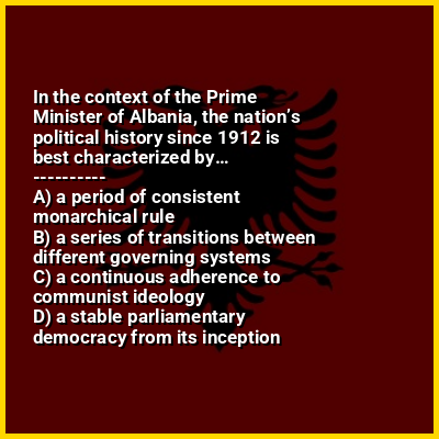 ⭐ In the context of the Prime Minister of Albania, the nation’s political history since 1912 is best characterized by…