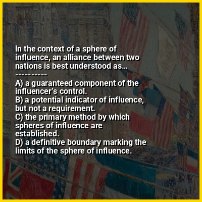 ⭐ In the context of a sphere of influence, an alliance between two nations is best understood as…