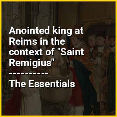 The most important part of the French ceremony was not the coronation itself, but the Sacre – the anointing or unction of the king. The Carolingian king Pepin the Short was anointed in Soissons (752) to legitimize the accession of the new dynasty. A second anointing of Pepin by Pope Stephen II took place at the Basilica of Saint-Denis in 754, the first to be performed by a pope. The unction served as a reminder of the baptism of king Clovis I in Reims by archbishop Saint Remi in 496/499, where the ceremony was finally transferred in 816 and completed with the use of the Holy Ampulla found in 869 in the grave of the Saint. Since this Roman glass vial containing the balm due to be mixed with chrism, was allegedly brought by the dove of the Holy Spirit, the French monarchs claimed to receive their power by divine right. Out of respect for the miraculous oil, the king's shirt and the gloves put on after the unction of the hands were burned after the ceremony. Exceptionally, the shirt worn by Louis XV was not burned. The shirt was donated to the king of Portugal, John V, and is today at the National Palace of Mafra, guarded by the Royal and Venerable Confraternity of the Most Blessed Sacrament of Mafra.