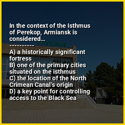 The border between Ukraine's Autonomous Republic of Crimea and Kherson Oblast runs through the northern part of the isthmus. Since the start of the Russian military occupation and subsequent annexation of Crimea in 2014, this is also the de facto northern border of the Russian Republic of Crimea. The cities of Perekop, Armiansk, Suvorove (Crimea) [uk] and Krasnoperekopsk are situated on the isthmus. The North Crimean Canal ran through the isthmus, supplying Crimea with fresh water from the Dnieper River. Ukraine closed the canal in 2014, and the water supply was only partially replaced by other local and Russian sources.