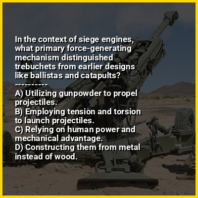 ⭐ In the context of siege engines, what primary force-generating mechanism distinguished trebuchets from earlier designs like ballistas and catapults?