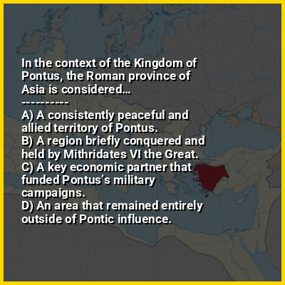 Asia (Ancient Greek: Ἀσία) was a Roman province covering most of western Asia Minor (Anatolia, Turkey), which was created following the Roman Republic's annexation of the Attalid Kingdom in 133 BC. After the establishment of the Roman Empire by Augustus, it was the most prestigious senatorial province and was governed by a proconsul. That arrangement endured until the province was subdivided in the fourth century AD.