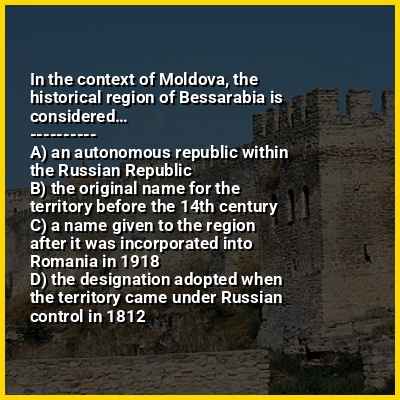 ⭐ In the context of Moldova, the historical region of Bessarabia is considered…