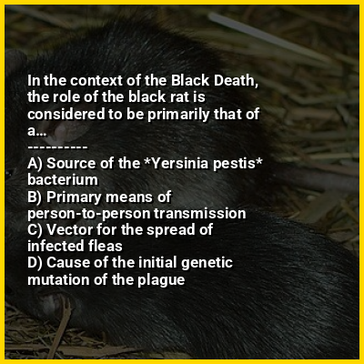 ⭐ In the context of the Black Death, the role of the black rat is considered to be primarily that of a…