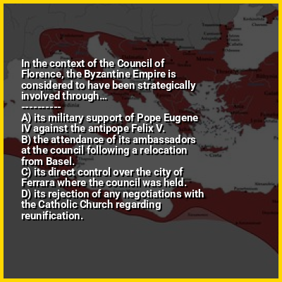 ⭐ In the context of the Council of Florence, the Byzantine Empire is considered to have been strategically involved through…
