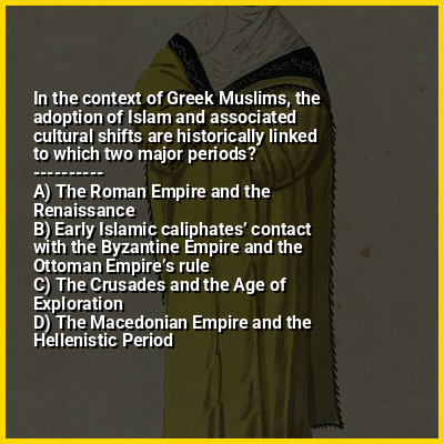 ⭐ In the context of Greek Muslims, the adoption of Islam and associated cultural shifts are historically linked to which two major periods?