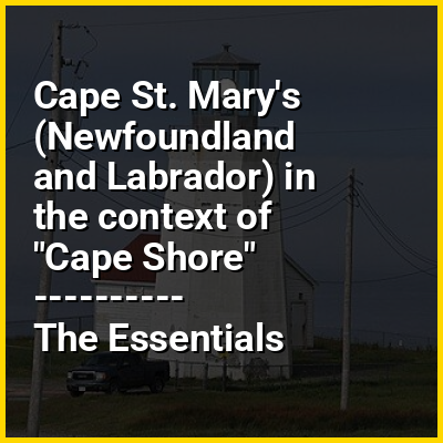 Often confused or conflated with the Southern Shore (a rural district with strong Irish-Newfoundland heritage stretching south from St. John's to Trepassey), the Cape Shore is similarly rural and populated by Irish Newfoundlanders, but is geographically distinct. It is named for Cape St. Mary's, the southeastern tip of Placentia Bay, celebrated in the famous Newfoundland ballad Let Me Fish Off Cape St. Mary's.