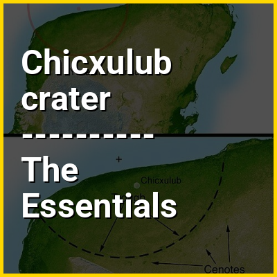 The Chicxulub crater is an impact crater buried underneath the Yucatán Peninsula in Mexico. Its center is offshore, but the crater is named after the onshore community of Chicxulub Pueblo (not the larger coastal town of Chicxulub Puerto). It was formed slightly over 66 million years ago when an asteroid, about ten kilometers (six miles) in diameter, struck Earth. The crater is estimated to be 200 kilometers (120 miles) in diameter and 30 kilometers (19 miles) in depth. It is one of the largest impact structures on Earth, alongside the much older Sudbury and Vredefort impact structures, and the only one whose peak ring is intact and directly accessible for scientific research.