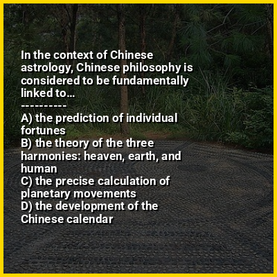 ⭐ In the context of Chinese astrology, Chinese philosophy is considered to be fundamentally linked to…