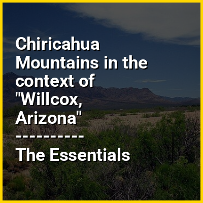 The Chiricahua Mountains and other associated ranges, along with Sulphur Springs Valley on the west and the San Simon Valley on the east, form the eastern half of Cochise County in southeast Arizona. The Pedregosa Mountains are found at the southern end of the Chiricahua Mountains, while the Swisshelm Mountains are located to the southwest. The northwest end of the Chiricahua mountains continues as the Dos Cabezas Mountains beyond Apache Pass and the Fort Bowie National Historic Site. Access to the Chiricahua Mountains and Coronado National Forest is through Willcox from the north, Douglas from the south, and Rodeo from the east.
