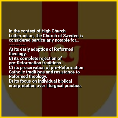 ⭐ In the context of High Church Lutheranism, the Church of Sweden is considered particularly notable for…