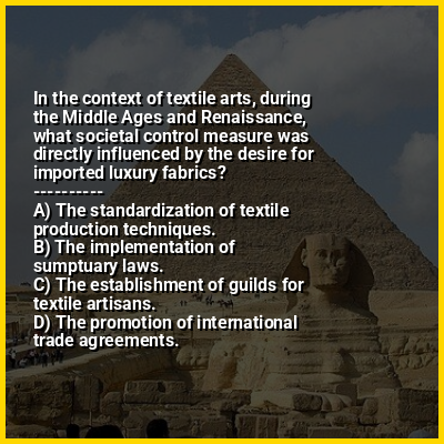 ⭐ In the context of textile arts, during the Middle Ages and Renaissance, what societal control measure was directly influenced by the desire for imported luxury fabrics?