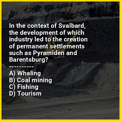 ⭐ In the context of Svalbard, the development of which industry led to the creation of permanent settlements such as Pyramiden and Barentsburg?