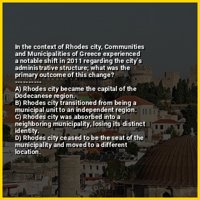 ⭐ In the context of Rhodes city, Communities and Municipalities of Greece experienced a notable shift in 2011 regarding the city’s administrative structure; what was the primary outcome of this change?