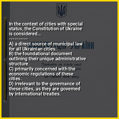 ⭐ In the context of cities with special status, the Constitution of Ukraine is considered…