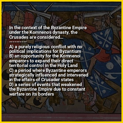 ⭐ In the context of the Byzantine Empire under the Komnenos dynasty, the Crusades are considered…