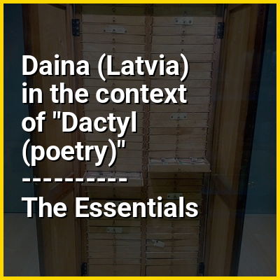 A daina or tautas dziesma is a traditional form of music or poetry from Latvia. Lithuanian dainos share common traits with them, but have been more influenced by European folk song traditions. Latvian dainas often feature drone vocal styles and pre-Christian themes and legends, and can be accompanied by musical instruments such as Baltic psalteries (e.g. kokles).Dainas tend to be very short (usually four-liners) and are usually in a trochaic or a dactylic metre. Dainas are being translated into English by Latvian American Ieva Auziņa-Szentivanyi.