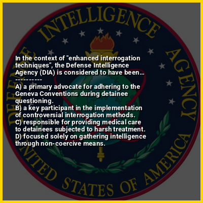 ⭐ In the context of "enhanced interrogation techniques", the Defense Intelligence Agency (DIA) is considered to have been…