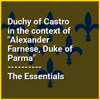 The Duchy of Castro was a fiefdom in central Italy formed in 1537 from a small strip of land on what is now Lazio's border with Tuscany, centred on Castro, a fortified city on a tufa cliff overlooking the Fiora River which was its capital and ducal residence. While technically a vassal state of the Papal States, it enjoyed de facto independence under the rule of the House of Farnese until 1649, when it was subsumed back into the Papal States and administered by the House of Stampa di Ferentino.