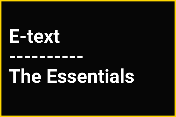 e-text (from "electronic text"; sometimes written as etext) is a general term for any document that is read in digital form, and especially a document that is mainly text. For example, a computer-based book of art with minimal text, or a set of photographs or scans of pages, would not usually be called an "e-text". An e-text may be a binary or a plain text file, viewed with any open source or proprietary software. An e-text may have markup or other formatting information, or not. An e-text may be an electronic edition of a work originally composed or published in other media, or may be created in electronic form originally. The term is usually synonymous with e-book.