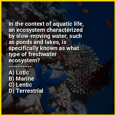 ⭐ In the context of aquatic life, an ecosystem characterized by slow-moving water, such as ponds and lakes, is specifically known as what type of freshwater ecosystem?