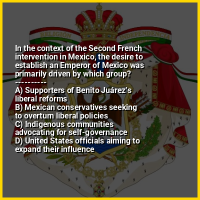 ⭐ In the context of the Second French intervention in Mexico, the desire to establish an Emperor of Mexico was primarily driven by which group?