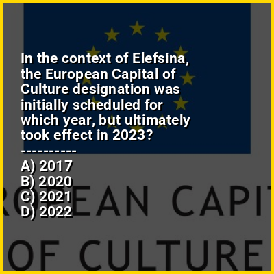 ⭐ In the context of Elefsina, the European Capital of Culture designation was initially scheduled for which year, but ultimately took effect in 2023?