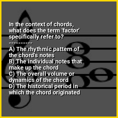 In music, a factor or chord factor is a member or component of a chord. These are named root, third, fifth, sixth, seventh, ninth (compound 2nd), eleventh (compound 4th), thirteenth (compound 6th), and so on, for their generic interval above the root.In harmony, the consonance and dissonance of a chord factor and a nonchord tone are distinguished, respectively.