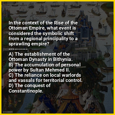 ⭐ In the context of the Rise of the Ottoman Empire, what event is considered the symbolic shift from a regional principality to a sprawling empire?