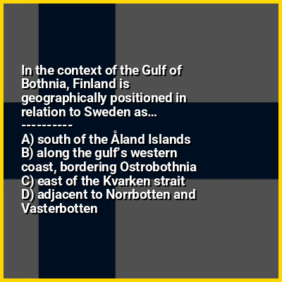 ⭐ In the context of the Gulf of Bothnia, Finland is geographically positioned in relation to Sweden as
