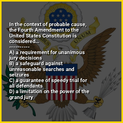⭐ In the context of probable cause, the Fourth Amendment to the United States Constitution is considered…