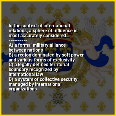 ⭐ In the context of international relations, a sphere of influence is most accurately considered…