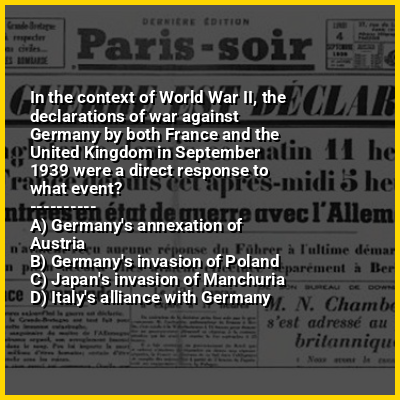 ⭐ In the context of World War II, the declarations of war against Germany by both France and the United Kingdom in September 1939 were a direct response to what event?