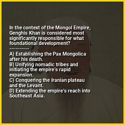 ⭐ In the context of the Mongol Empire, Genghis Khan is considered most significantly responsible for what foundational development?