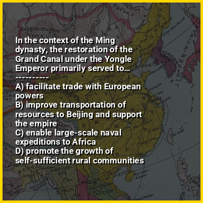 ⭐ In the context of the Ming dynasty, the restoration of the Grand Canal under the Yongle Emperor primarily served to…