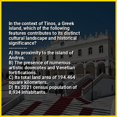 ⭐ In the context of Tinos, a Greek island, which of the following features contributes to its distinct cultural landscape and historical significance?