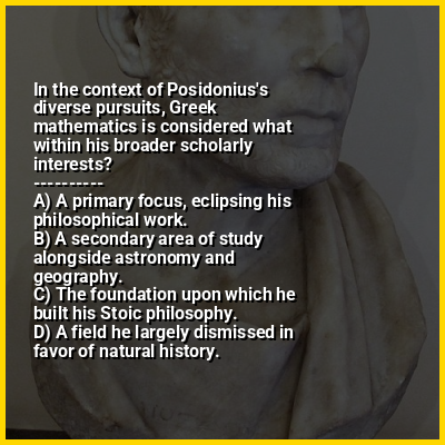 ⭐ In the context of Posidonius's diverse pursuits, Greek mathematics is considered what within his broader scholarly interests?