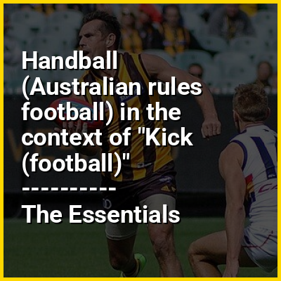 The handball or handpass is a ball-passing skill in the sport of Australian rules football. As throwing the ball is not allowed in Australian football, passing to a fellow player are executed either by kicking, or by a controlled "punch" with one hand holding the ball while the other knocking it into flight (typically in a fashion similar to an uppercut or an underhand volleyball serve). Handballing is the primary means of disposing the ball quickly and over short distances in Australian football.