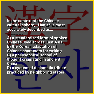 ⭐ In the context of the Chinese cultural sphere, *Hanja* is most accurately described as…