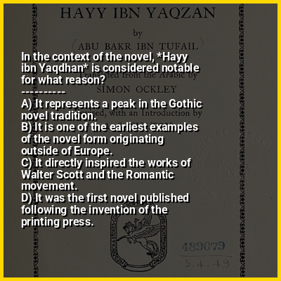 ⭐ In the context of the novel, *Hayy ibn Yaqdhan* is considered notable for what reason?