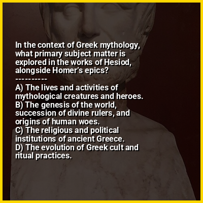 ⭐ In the context of Greek mythology, what primary subject matter is explored in the works of Hesiod, alongside Homer’s epics?
