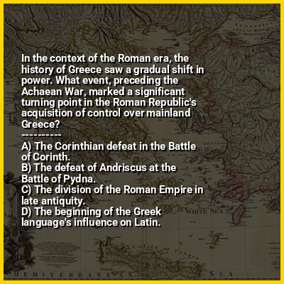 ⭐ In the context of the Roman era, the history of Greece saw a gradual shift in power. What event, preceding the Achaean War, marked a significant turning point in the Roman Republic's acquisition of control over mainland Greece?