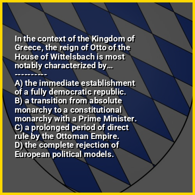 ⭐ In the context of the Kingdom of Greece, the reign of Otto of the House of Wittelsbach is most notably characterized by…