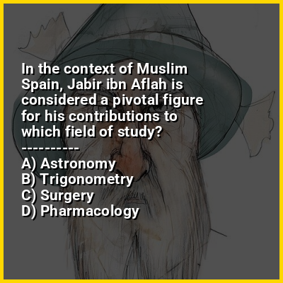 ⭐ In the context of Muslim Spain, Jabir ibn Aflah is considered a pivotal figure for his contributions to which field of study?