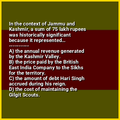 ⭐ In the context of Jammu and Kashmir, a sum of 75 lakh rupees was historically significant because it represented…