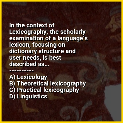 ⭐ In the context of Lexicography, the scholarly examination of a language’s lexicon, focusing on dictionary structure and user needs, is best described as…