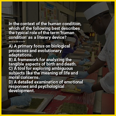 ⭐ In the context of the human condition, which of the following best describes the typical role of the term 'human condition' as a literary device?